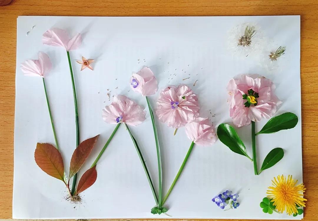 主要选择了兰花草和桃花瓣这两种最能代表春天的植物,绿色的叶子和蒲公英告诉我们春天到了,路边各式各样的小花也冒出了头,春天来了夏天还会远吗~