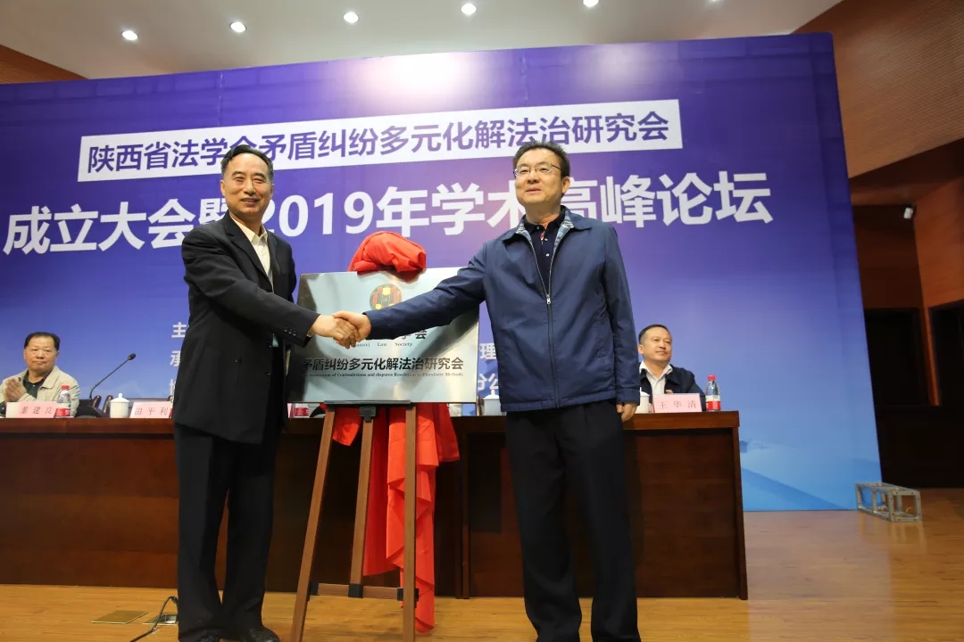 陕西省法学会党组书记、副会长杨建军向陕西省法学会矛盾纠纷多元化解法治研究会授牌