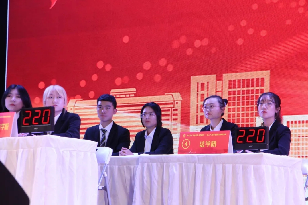 紧接着是抢答题环节,与上一轮相比,这一轮更加考验选手们的应变能力和反应速度。我院在多次抢答后,总得分不断累加。这一环节过后,我院以160分的成绩与信息科学与技术学院并列第一。