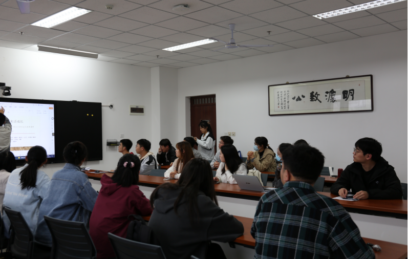 鲍亮同学介绍此次活动是调研团在党的二十大报告提出全面推进乡村振兴的背景之下,以助力乡村振兴,建设美丽乡村为主题开展的。活动旨在为各村镇营造遇事找法、自觉守法的浓厚法治氛围。七天的时间参观了茶叶公司、博物馆等,并前往政府、检察院进行学习调研。团队发放农业知识产权相关调查问卷,发现现存的问题,从而提出针对性的建议和解决措施。